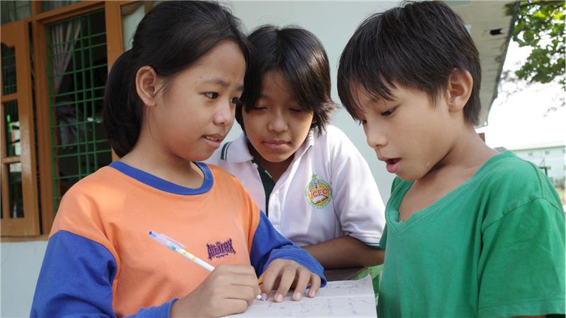 村にいた頃、彼は、それまで通っていた公立校からの転校を余儀なくされ、現地の団体が無償で開いている無認可の学校で勉強を続けていました。