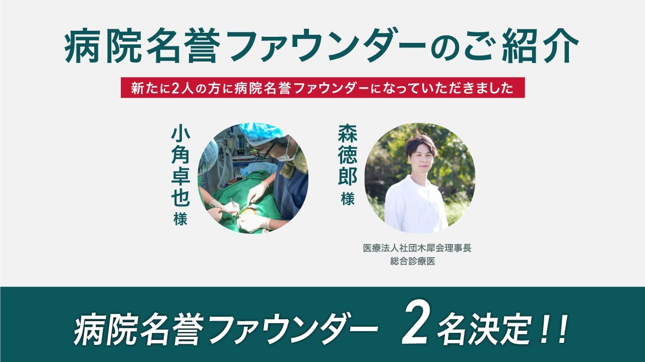 すでに多くの方にお申し込みをいただいていますが、今回は新たに病院名誉ファウンダーに就任いただいた以下の2名の方をご紹介します。
