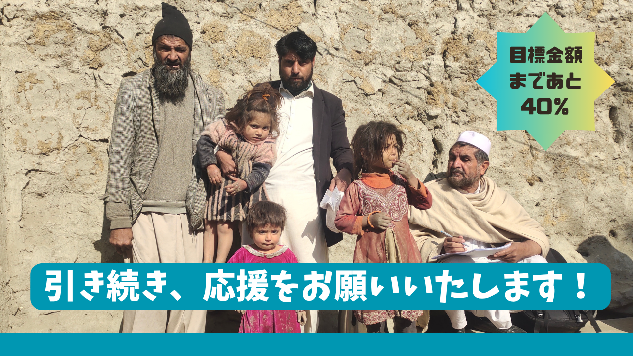 皆さまからの温かいご支援や、メッセージ、拡散のご協力のおかげでここまで到達できたことを、心から感謝申し上げます。しかしながら、残り1か月を切った現在、道は半ばで、ゴールには到達できておりません。私たちは、必ず100万円の目標を達成し、厳しい状況下でも希望を失わず、自立への一歩を踏み出そうとしているアフガニスタンの人びとを支えたいと、心から熱望しています。アフガニスタンの子どもたちが、笑顔で暮らせるように。人びとが「自分で明日を選べる」ように。そんな未来を実現するため、ゴールまでともに歩んでいただけませんか。残り28日間、引き続き、皆さまの温かい応援を、どうかよろしくお願いいたします。
