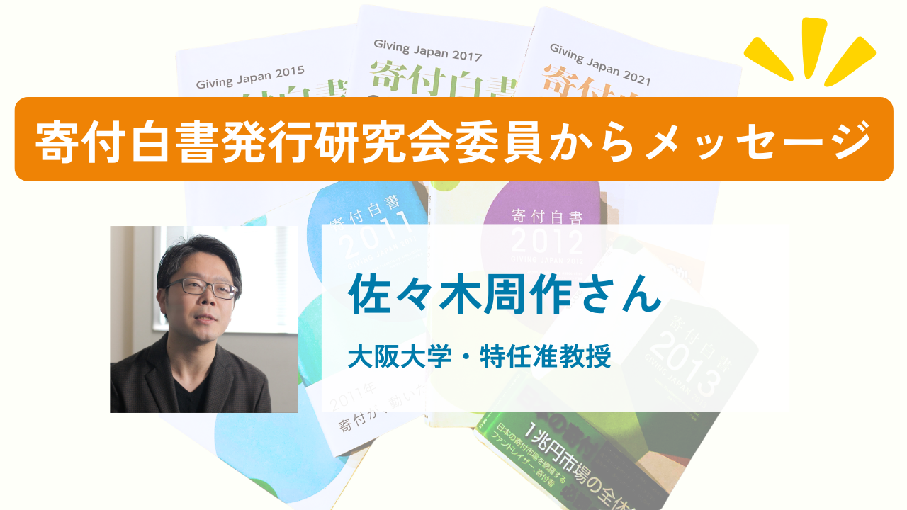 今回は、寄付白書発行研究会委員である佐々木先生からです。