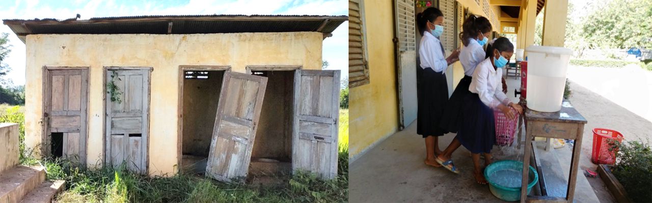 しかしカンボジアでは、トイレや給水施設が十分に整っていない学校が全体の約8割にのぼります。生徒数に対してトイレの数が極端に少なく、手洗い場がない学校では、バケツや小さなタンクの水で手を洗う状況が続いています。