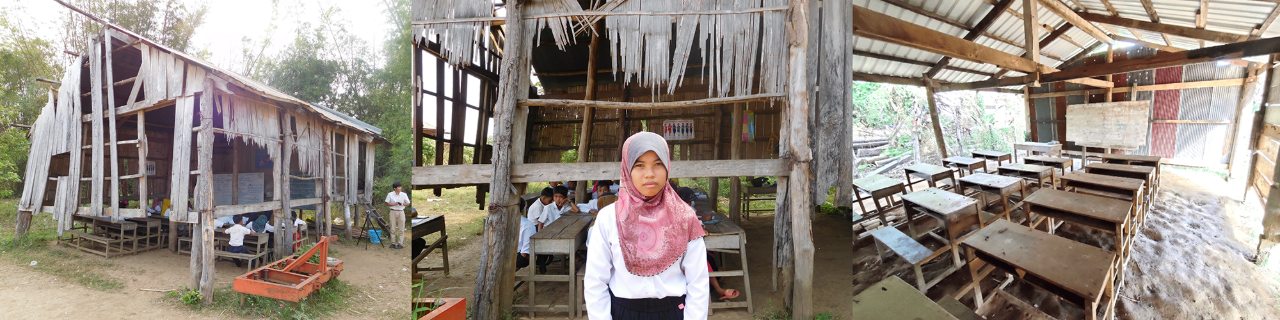 老朽化によって倒壊の怖れのある校舎や、壁がないことで、天候の影響を大きく受けてしまい、授業が困難な校舎の建て替えを行っています。