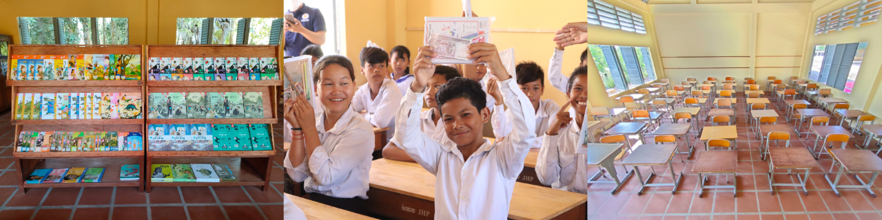 カンボジアの公立小中学校では、生徒数に対して教室数が大きく不足しており、多くが二部制で授業を行っています。