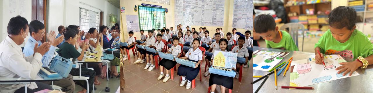 芸術教育は「知識や技術を学ぶ時間」ではなく、子どもたちの想像力・表現力・文化理解など「豊かな心」を育むと信じています。 カンボジアの子どもたちが音楽や美術の楽しさを知り、 質の高い芸術教育を受けられる環境づくりを目指して、段階的な支援を行っています。