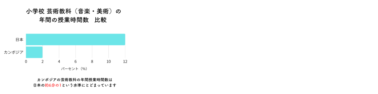 カンボジアでは、内戦期に多くの芸術家や教員が失われ、今も伝統文化や芸術を教えるための人材が不足しています。そのため、これまで芸術教育を受けた経験がない教員にとって、芸術教科を指導することは難しく、「模写」や「楽器名の暗記」などの指導にとどまっています。