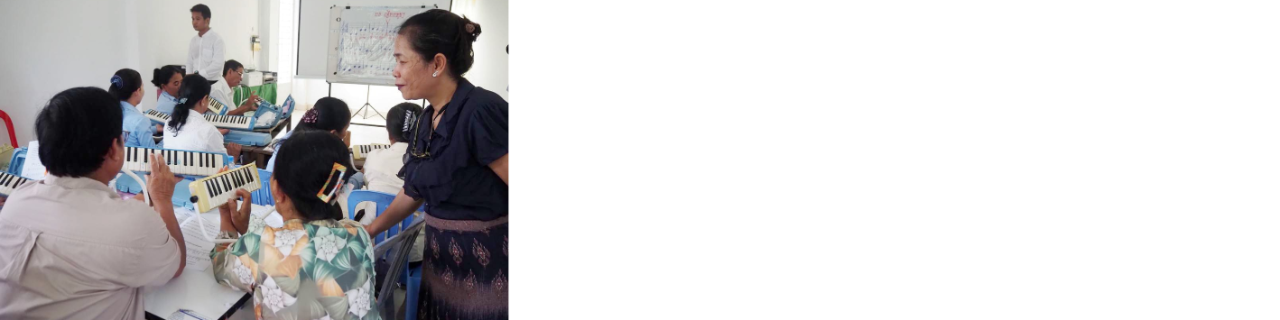 子ども達の豊かな心や感性、人間力を育むのに必要とされる「音楽」「美術」の授業が後回しにされがちなカンボジアにおいて、小学校芸術教育の教科書や指導書の開発・教員養成を実施しています。日本人専門家の指導の下、約1976名以上の芸術教員が研修を受け、現在はカンボジア全土で芸術教育の普及を目指しています。