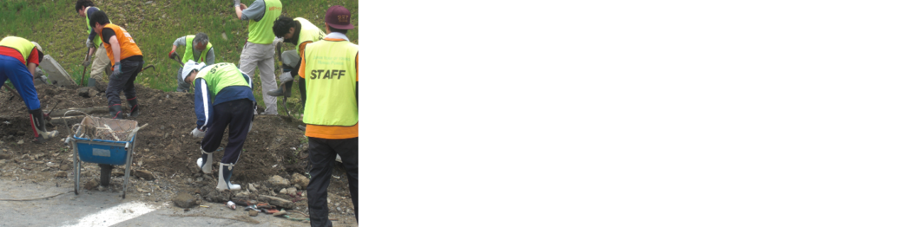 国内被災地支援活動を行っています。これまでに東日本大震災や豪雨や台風等で被災した地域への募金呼びかけやボランティア派遣を行いました。南三陸町では復興の象徴として、桜植樹1,900本以上を実施。