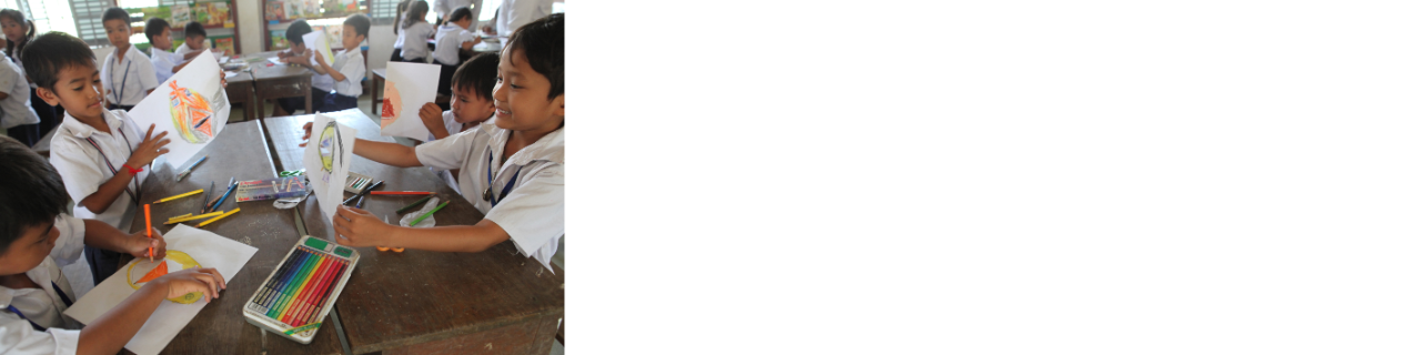 子ども達の豊かな心や感性、人間力を育むのに必要とされる「音楽」「美術」の授業が後回しにされがちなカンボジアにおいて、小学校芸術教育の教科書や指導書の開発・教員養成を実施しています。日本人専門家の指導の下、約1976名以上の芸術教員が研修を受け、現在はカンボジア全土で芸術教育の普及を目指しています。