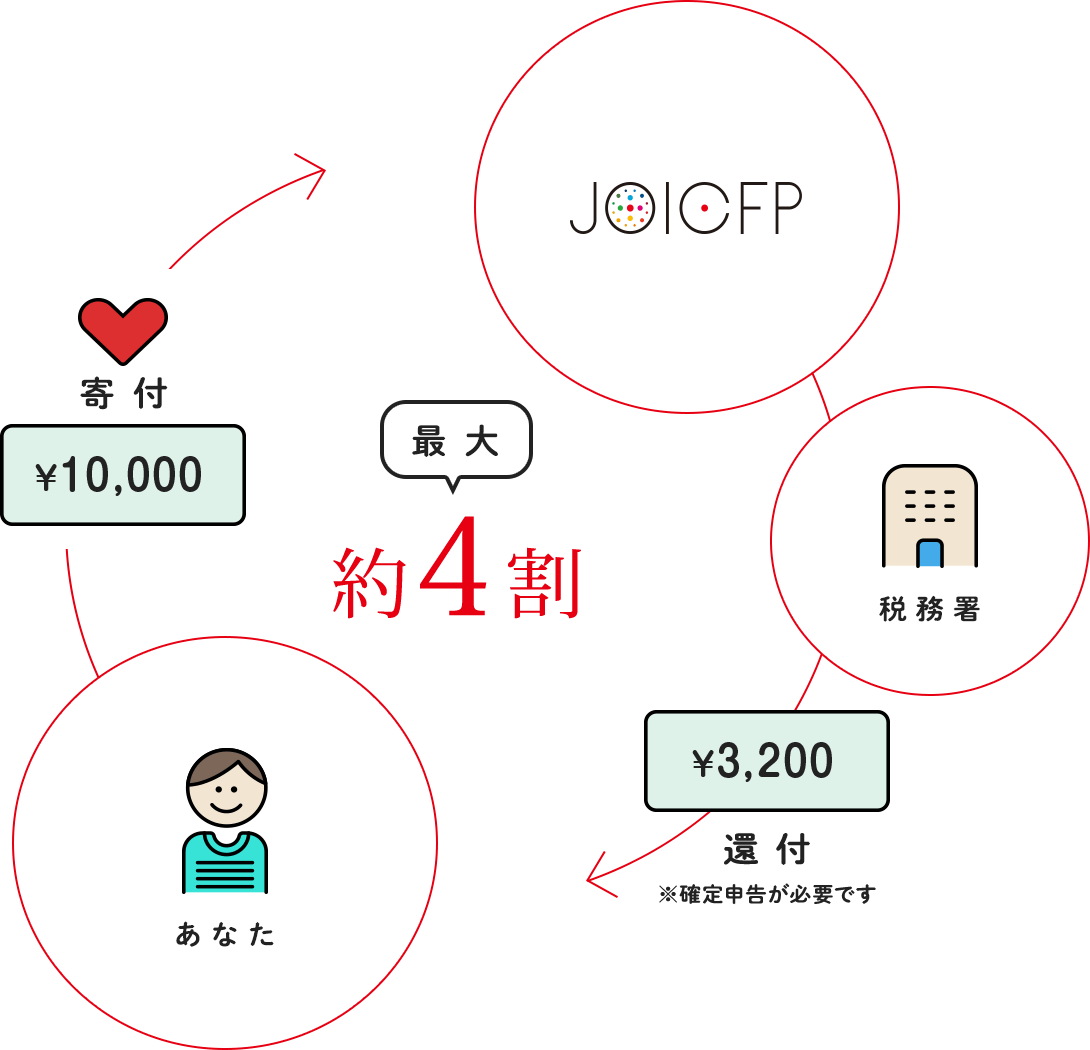 ジョイセフへの寄付金は、個人の場合は所得税、法人の場合は法人税の税制上の優遇措置が適用され、税控除が受けられます。