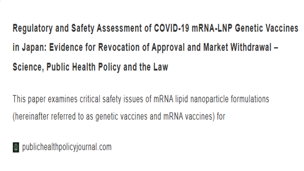 2025-08-28 09:05英文論文発表のご報告このたび2025年8月26日に、mRNAワクチン(Messenger RNA脂質ナノ粒子製剤)の承認取消および市場回収を求める英文論文をピアレビュー誌に発表いたしました。2025-08-28 09:05英文論文発表のご報告このたび2025年8月26日に、mRNAワクチン(Messenger RNA脂質ナノ粒子製剤)の承認取消および市場回収を求める英文論文をピアレビュー誌に発表いたしました。
