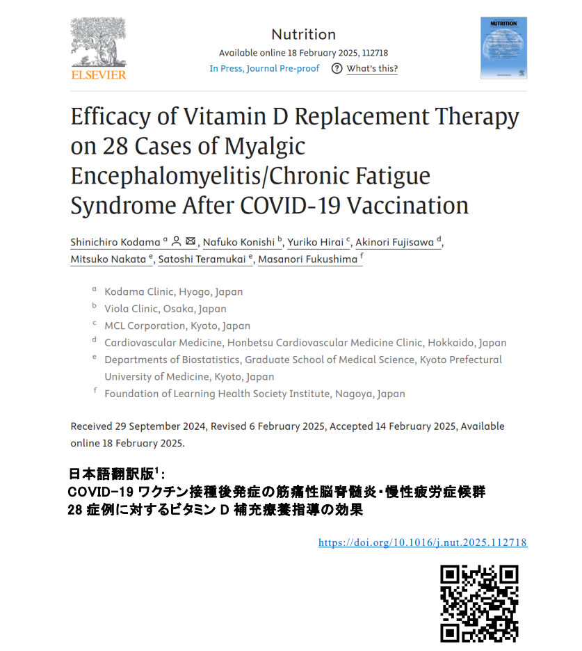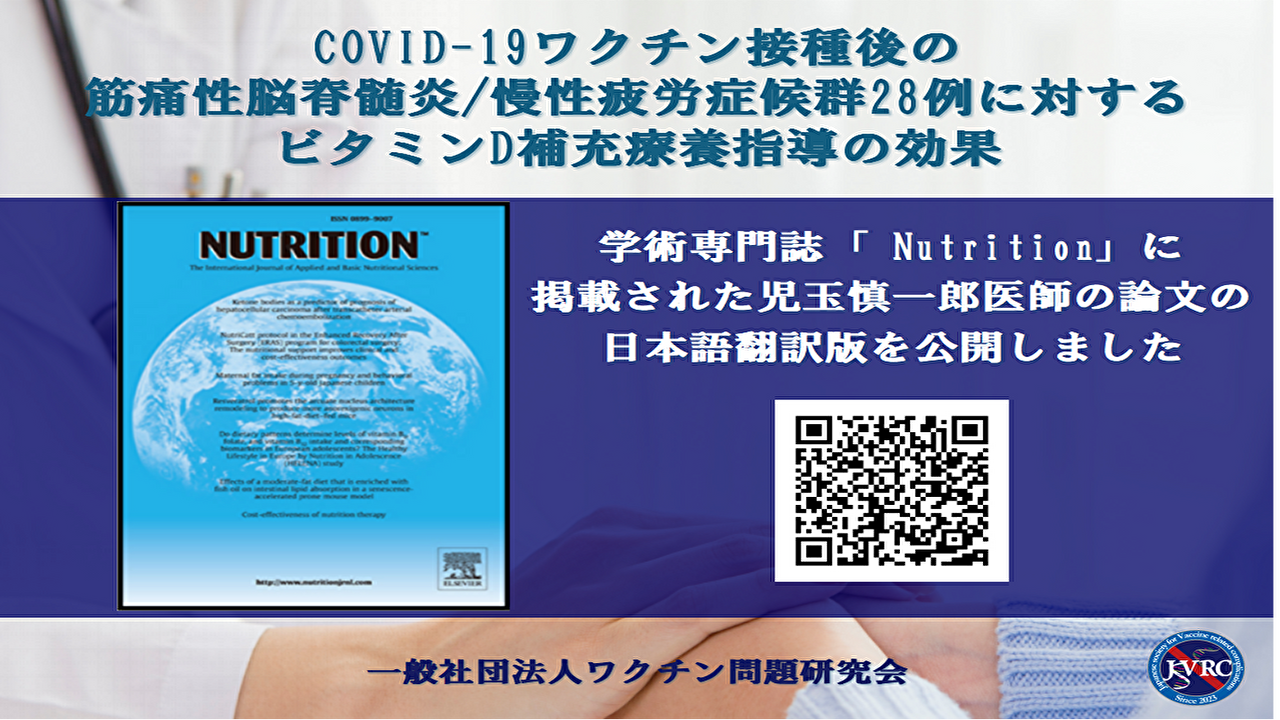 このたび、学術専門誌「Nutrition」に掲載された、児玉慎一郎医師の論文の日本語翻訳版をワクチン問題研究会の公式HP(jsvrc.jp)で公開いたしました。