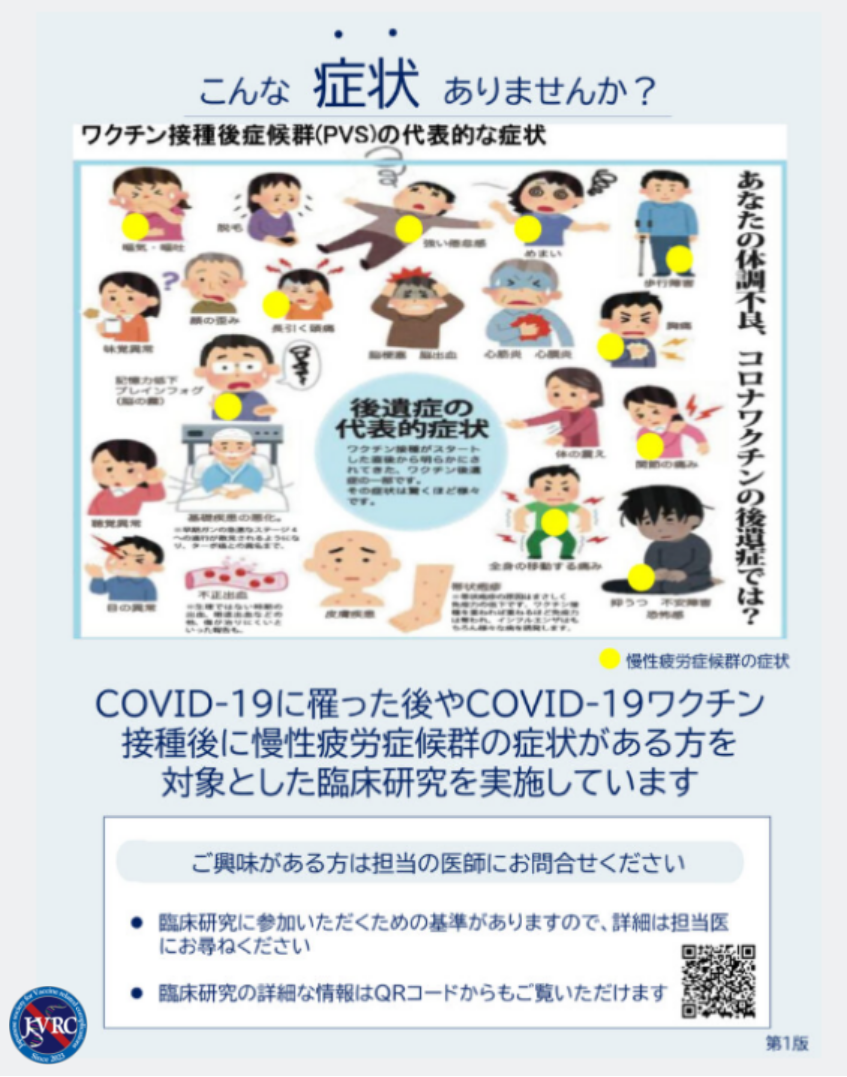 新型コロナ罹患後、あるいは新型コロナワクチン接種後に発症する慢性疲労症候群によって、非常に多くの方々が、闘病を余儀なくされています。 慢性疲労症候群は医学的に正しくは、筋痛性脳脊髄炎/慢性疲労症候群(Myalgic Encephalomyelitis/Chronic Fatigue Syndrome: ME/CFS)と呼ばれています。 厚生労働省研究班の実態調査によると、日本の罹患患者さんは約12万~36万人と推定され、その約3割は寝たきりに近い重症患者である深刻な実態が明らかとなっています。慢性疲労症候群の原因は未だ解明されておらず、現在有効な治療法は確立されていません。 今回、私たち一般社団法人ワクチン問題研究会は、ワクチン接種後の慢性疲労症候群に対する治療法の手がかりを見出しました。そこで、その治療法の検証を目的として「ランダム化比較臨床試験」を開始しました。 慢性疲労症候群で苦しんでおられる患者さんたちに1日も早く日常を取り戻していただくように皆様方の温かいご支援を伏してお願い申し上げます。