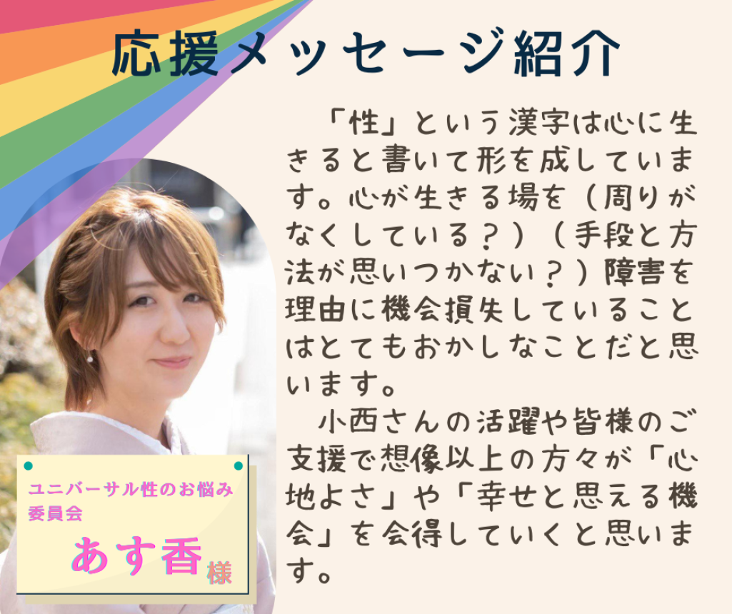 しかし、小西さんの活躍や皆様のご支援で想像以上の方々が「心地よさ」や「幸せと思える機会」を会得していくと思います。