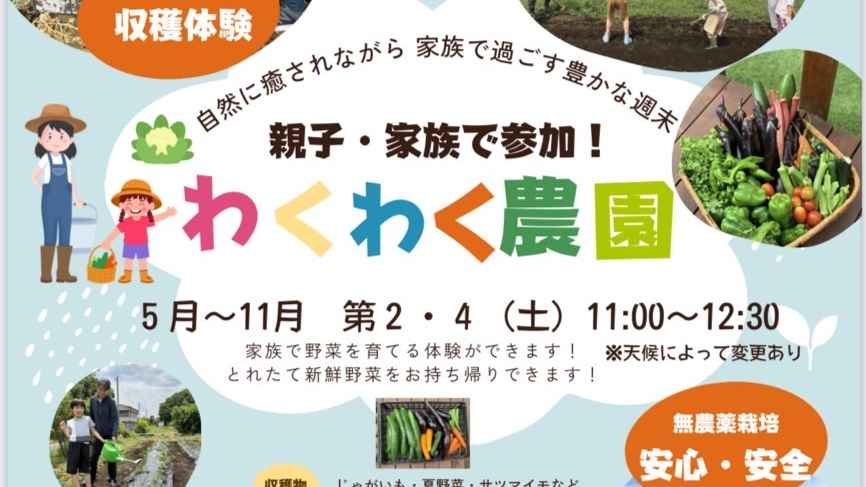 2025-04-26 16:34【参加者募集!】親子・家族で楽しむ!わくわく農園\月に2回の “ちょっと特別な日常” / 自然の中で、親子で一緒に汗をかいて、笑って、土にふれる…… 畑でのびのびとそんな時間を過ごしてみませんか? かけはしの子に限らず、外部のお子様とご家族もお申込みいただけます。 こんな方におすすめです! ・自然体験を通してこどもの五感を豊かに育みたい ・普段の忙しさから開放され、栽培や収穫を通して家族で会話を楽しむ良い週末を過ごしたい ・収穫した無農薬野菜を使って調理を楽しみたい ・家族同士のつながりも、ゆるやかに楽しみたい2025-04-26 16:34【参加者募集!】親子・家族で楽しむ!わくわく農園\月に2回の “ちょっと特別な日常” / 自然の中で、親子で一緒に汗をかいて、笑って、土にふれる…… 畑でのびのびとそんな時間を過ごしてみませんか? かけはしの子に限らず、外部のお子様とご家族もお申込みいただけます。 こんな方におすすめです! ・自然体験を通してこどもの五感を豊かに育みたい ・普段の忙しさから開放され、栽培や収穫を通して家族で会話を楽しむ良い週末を過ごしたい ・収穫した無農薬野菜を使って調理を楽しみたい ・家族同士のつながりも、ゆるやかに楽しみたい