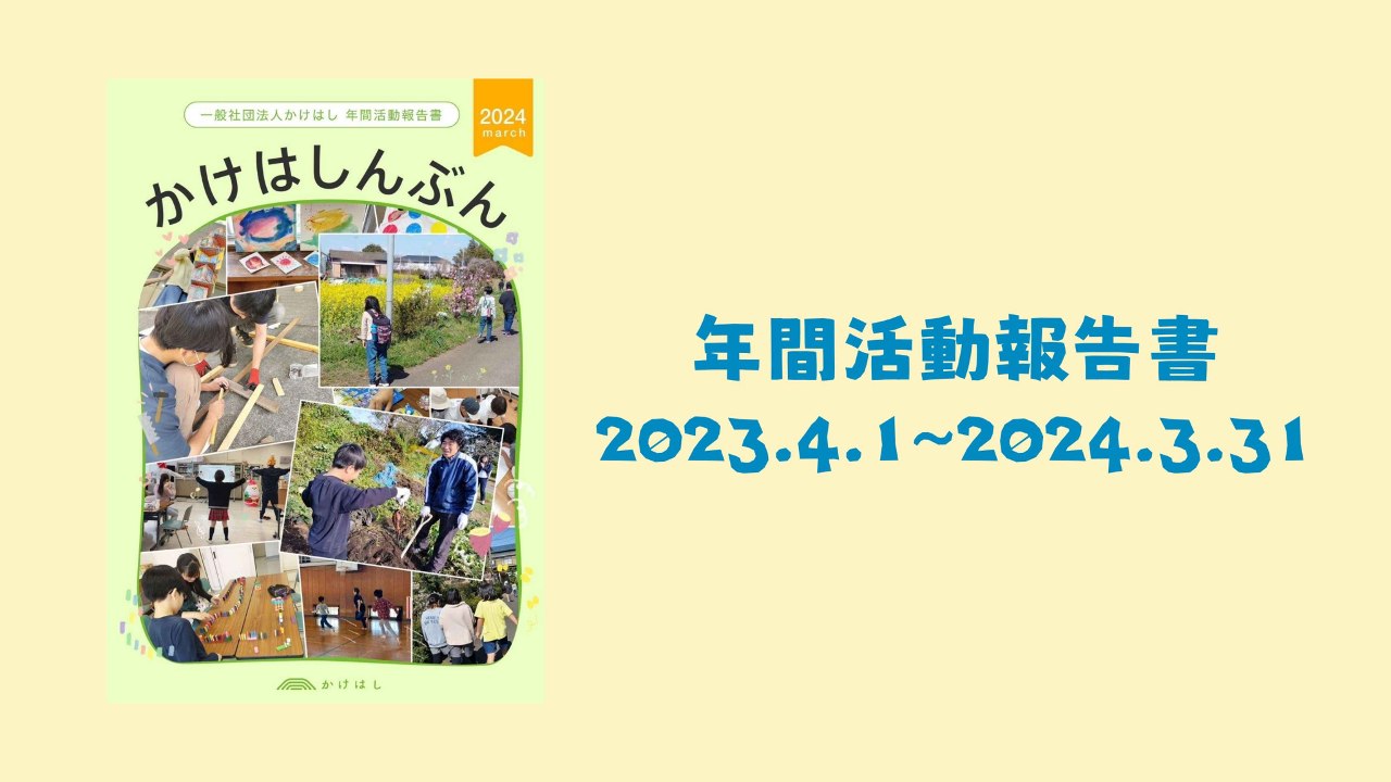 2024-05-31 08:19年間活動報告書「かけはしんぶん」をホームページに公開しましたいつもかけはしの活動にご理解とご協力をいただき、本当にありがとうございます! 2023年度の年間活動報告書「かけはしんぶん」をホームページに公開しました。 昨年度のニュースや活動の様子をぜひご覧いただければと思います。2024-05-31 08:19年間活動報告書「かけはしんぶん」をホームページに公開しましたいつもかけはしの活動にご理解とご協力をいただき、本当にありがとうございます! 2023年度の年間活動報告書「かけはしんぶん」をホームページに公開しました。 昨年度のニュースや活動の様子をぜひご覧いただければと思います。