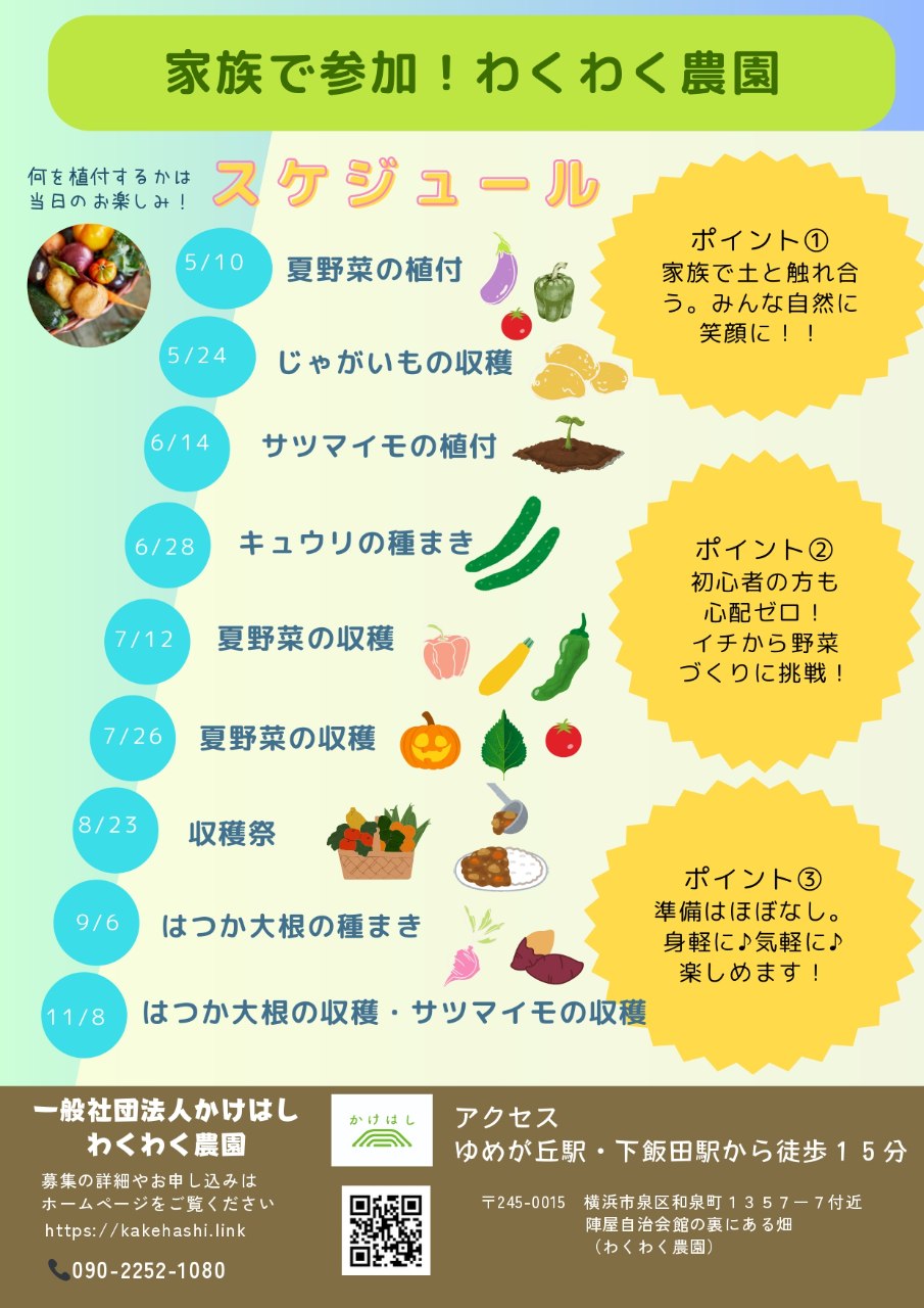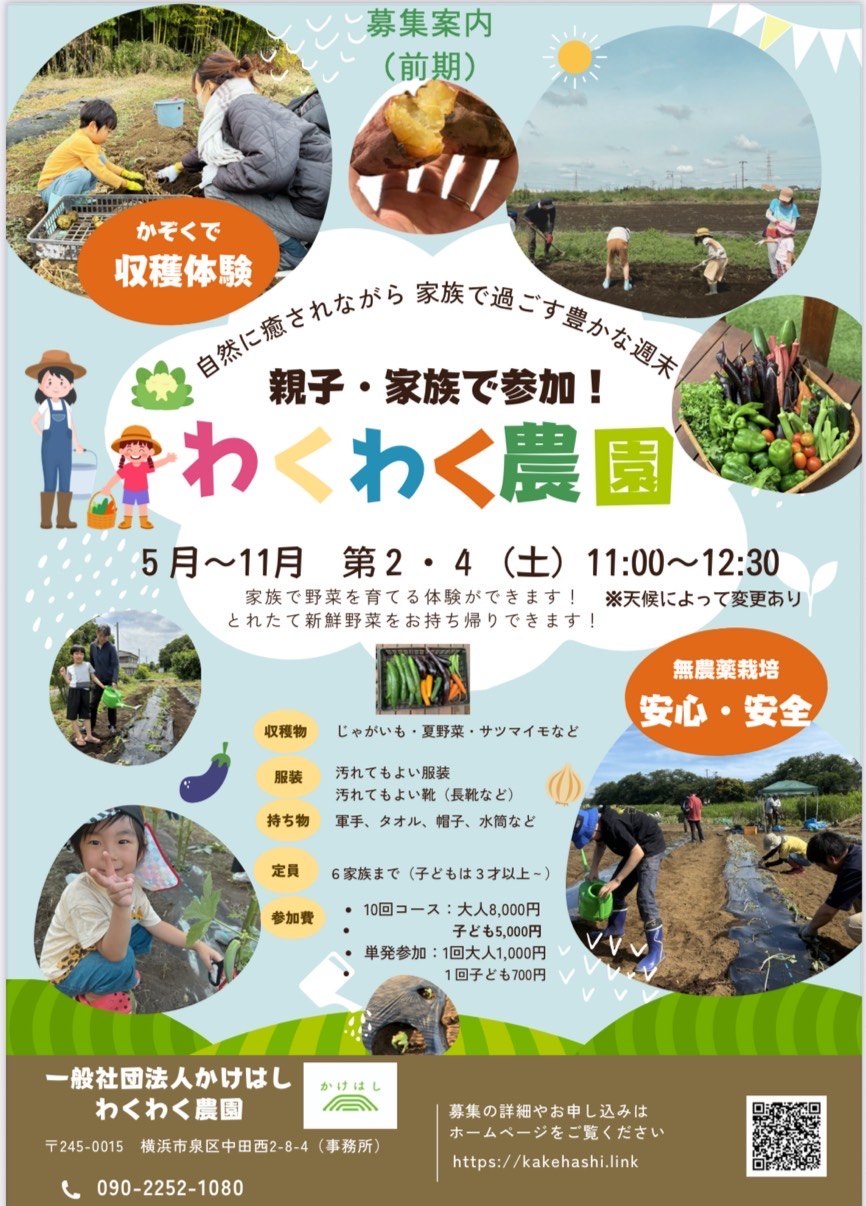 泉区内の畑で、月に2回、季節の野菜づくりを体験できる親子向け農園です。