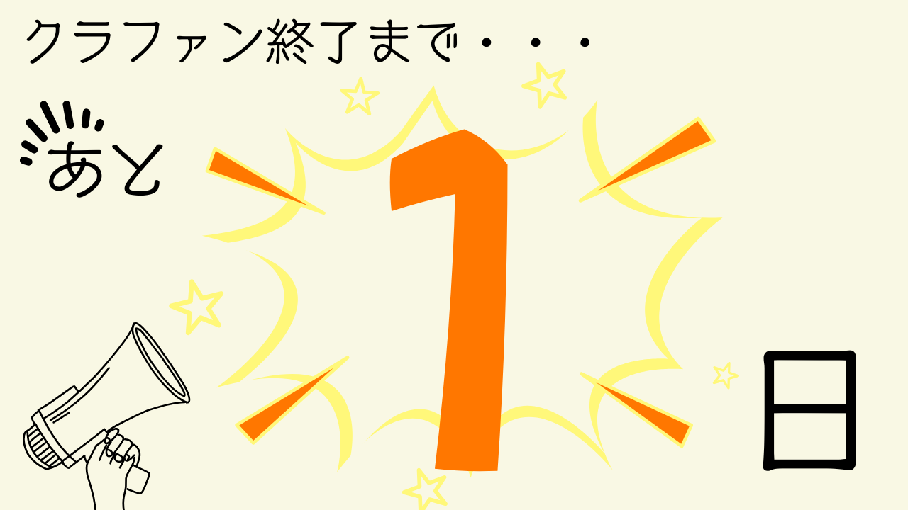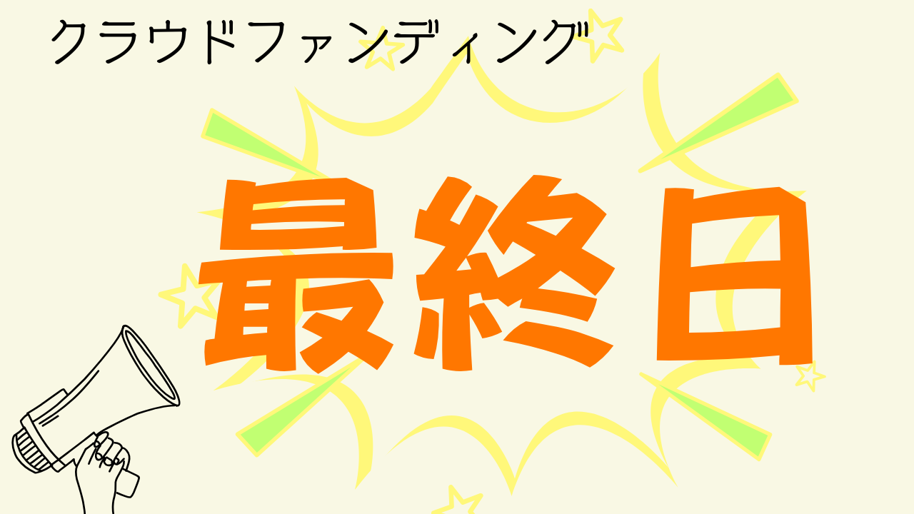 2024-12-26 10:13プロジェクト最終日!クラウドファンディングが最終日になりました! ここまで色々な形で応援してくださった皆様ありがとうございました。 本日の23:59が最終なので、それまで引き続きご寄付を受け付けています。 目標達成後にいただいているご寄付に関しては、地域交流を目的としたイベント、就労体験プログラム、表現プログラムなど若者の「体験活動」に活用させていただきたいと思っています。 最後まで頑張りますので応援いただけると幸いです!2024-12-26 10:13プロジェクト最終日!クラウドファンディングが最終日になりました! ここまで色々な形で応援してくださった皆様ありがとうございました。 本日の23:59が最終なので、それまで引き続きご寄付を受け付けています。 目標達成後にいただいているご寄付に関しては、地域交流を目的としたイベント、就労体験プログラム、表現プログラムなど若者の「体験活動」に活用させていただきたいと思っています。 最後まで頑張りますので応援いただけると幸いです!