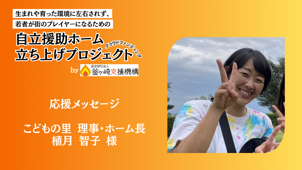 2024-12-21 17:00応援メッセージをいただきました!認定NPO法人こどもの里の理事で、自立援助ホームパレットのホーム長である植月智子さんから応援メッセージをいただきました!2024-12-21 17:00応援メッセージをいただきました!認定NPO法人こどもの里の理事で、自立援助ホームパレットのホーム長である植月智子さんから応援メッセージをいただきました!