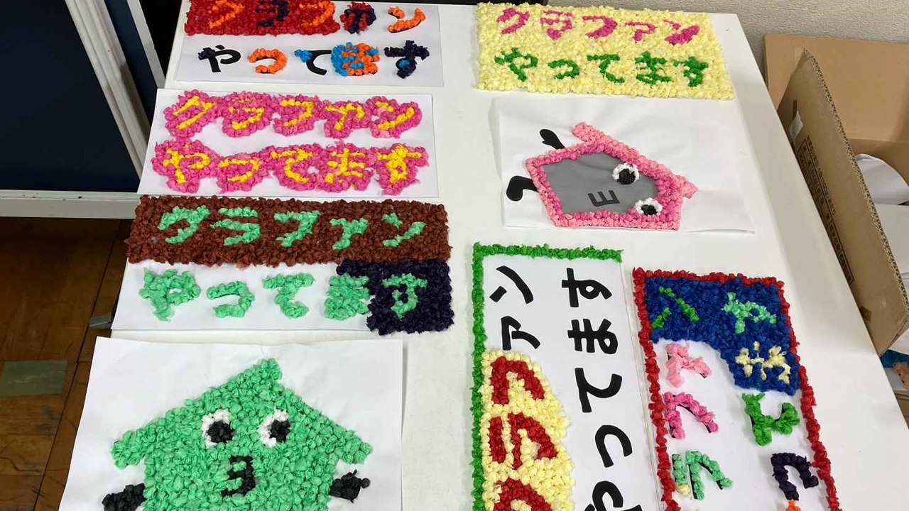 釜ヶ崎支援機構の利用者さんが貼り絵で「クラファンやってます」という文字を作ってくれています。 どんな色にするかは、利用者さんにお任せでやってもらいました。 普段から貼り絵のプログラムを開催しているため、慣れている人がほとんどで、皆さん迷いなく色を選んで自分なりの「クラファンやってます」を作ってくれています。 貼り絵プログラムをしていると毎度思うのですが、人によって色使いが全然違って、作品の雰囲気が多種多様です。 今回はどんな作品が完成するか楽しみです! 完成品を乞うご期待ください!