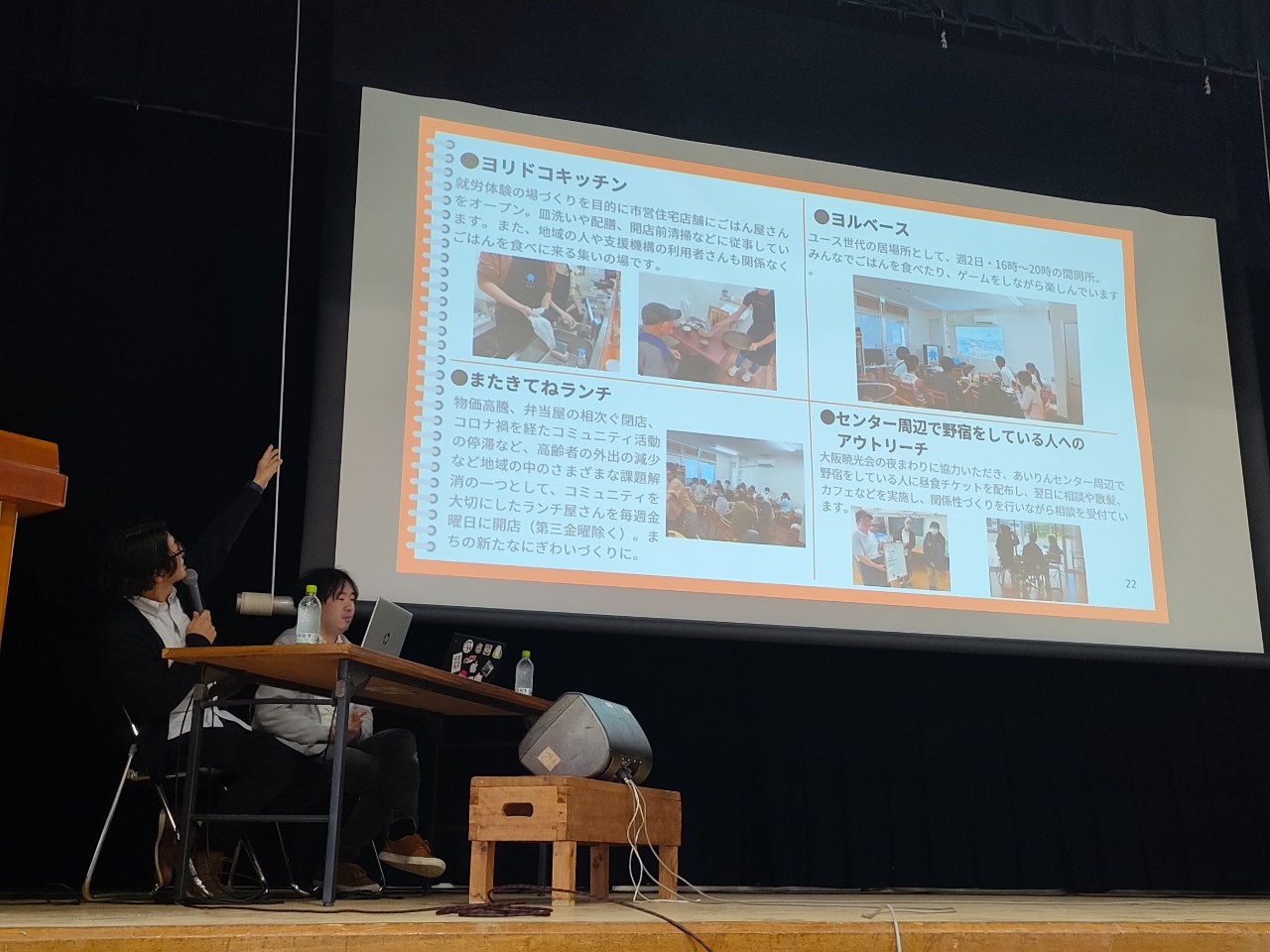 「釜ヶ崎支援機構の現在とこれから」では、現事務局長の小林大悟にバトンタッチしトークを行いました。