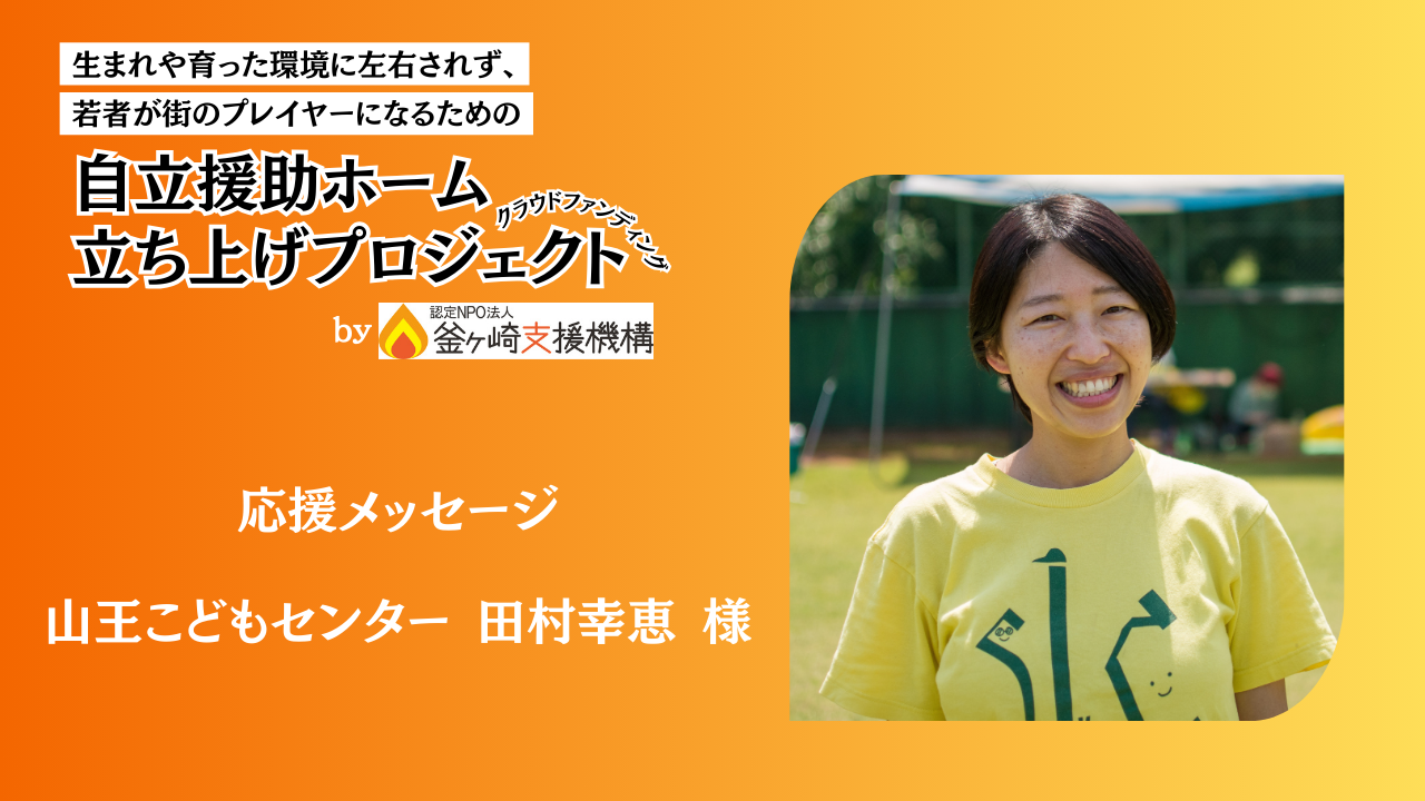 山王こどもセンターの田村幸恵様から、当機構のクラウドファンディングに応援メッセージをいただきました!