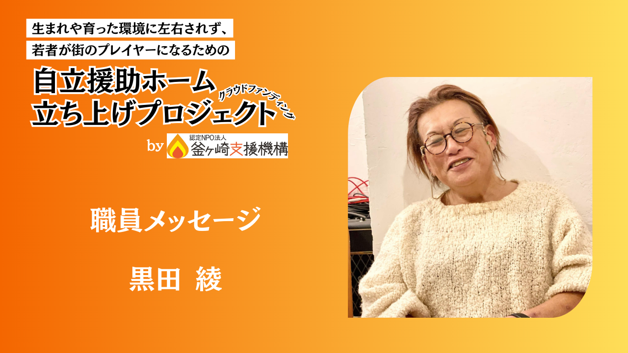 私の思いです。現代社会は、目に見えないモノによって、関係性や様々な仕組みが複雑に加速度を増しています。そんな社会で人の暮らしを維持してくことを、「多様」とか「個性」と言った言葉で個人に委ねて、知らない間に競争のサイクルに取り込んでいる。そのセーフティーネットとして「人権」や「尊厳」といった概念や制度が整備され、あたかも平等であると見せかける社会になっている。それはそれでいいのかもですが、私は高次元の景色が見たいと思ってます。本プロジェクトは、単なるセーフティーネットではなく、若者が自らステップを踏める取り組みだと思っています。まだ見てない景色を見てみませんか?ご協力をお願いします 。