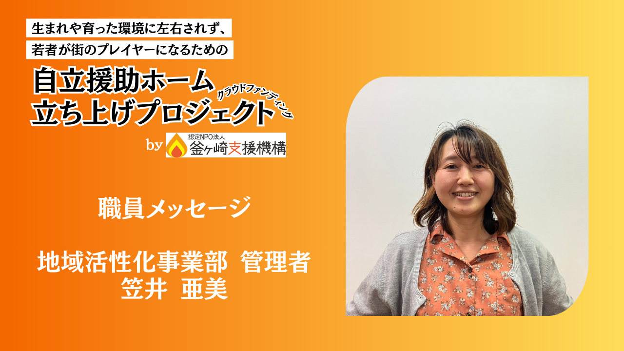 これから出会う若者が人生を主体的に生きていけるよう、一緒にサポートしていただけると幸いです。応援よろしくお願いいたします。