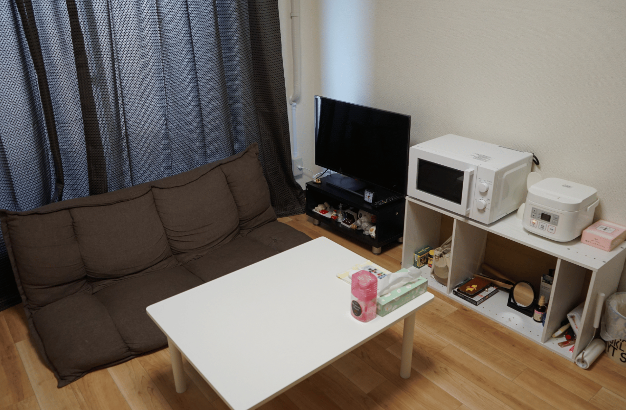 西成区内で22室ワンルームアパートを借り上げ、家具家電完備で提供。