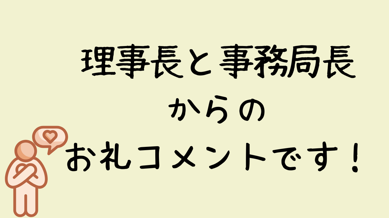 理事長と事務局長からお礼コメント動画が届きましたので、ご紹介させていただきます。