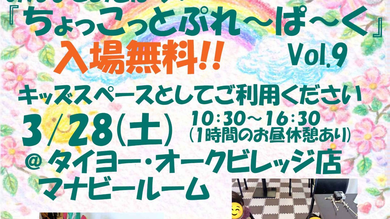 【キッズスペース】『ちょこっとぷれ~ぱ~く』vol.9、開催決定!!【入場無料】