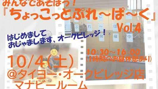 簡易プレーパーク『ちょこっとぷれ~ぱ~く』vol.4開催決定!!