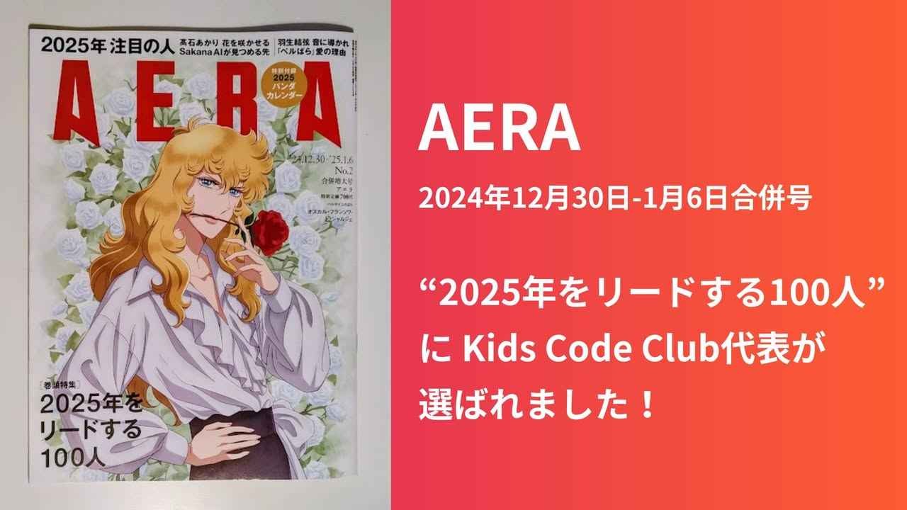 Kids Code Club代表の石川が、AERA「2025年をリードする100人」に選出されました