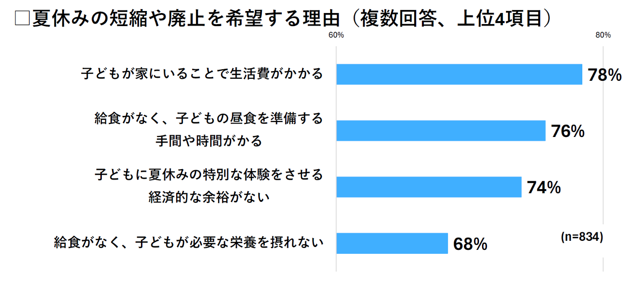 *夏休みが「なくてよい」または「今より短い方がよい」とした回答者が対象