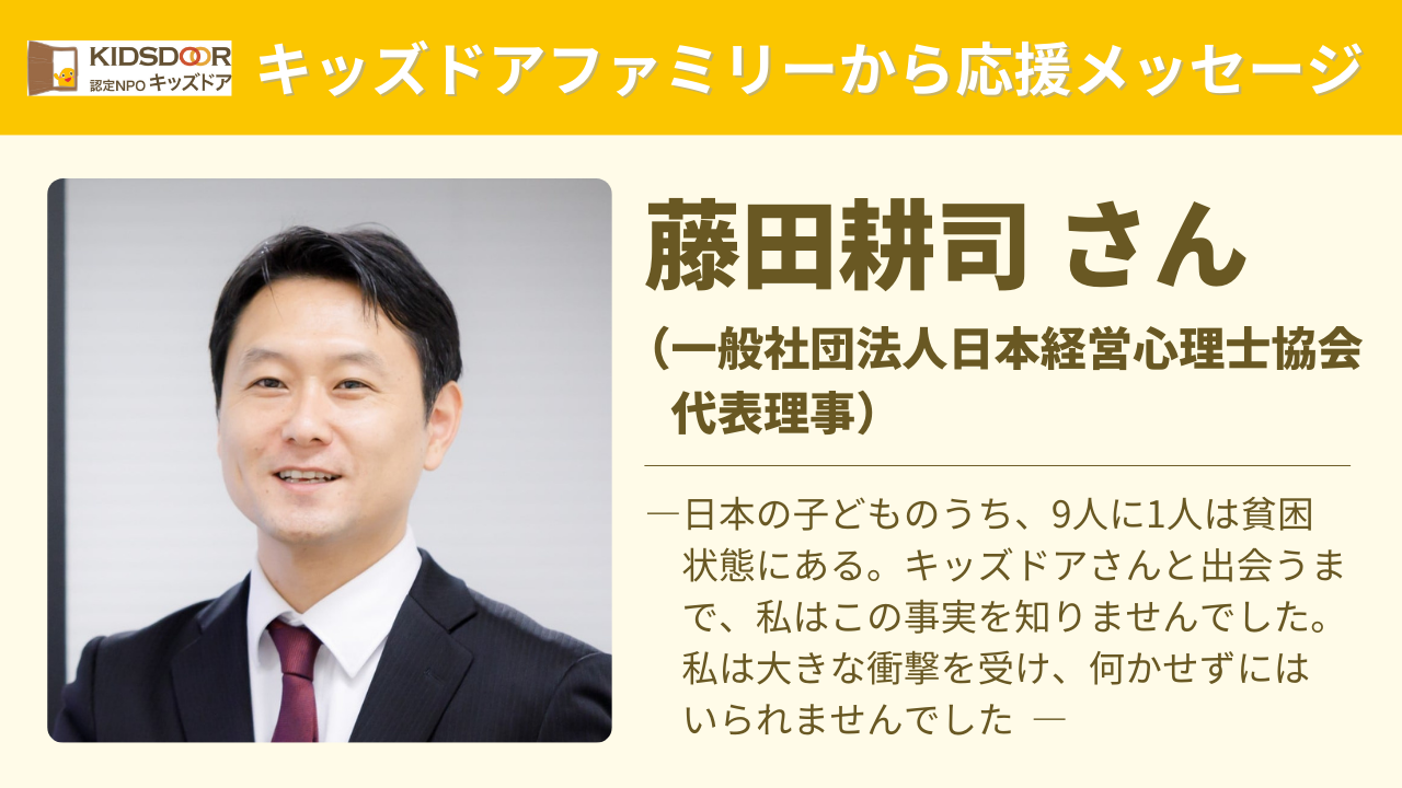 藤田耕司さん、温かいメッセージをいただきありがとうございました。