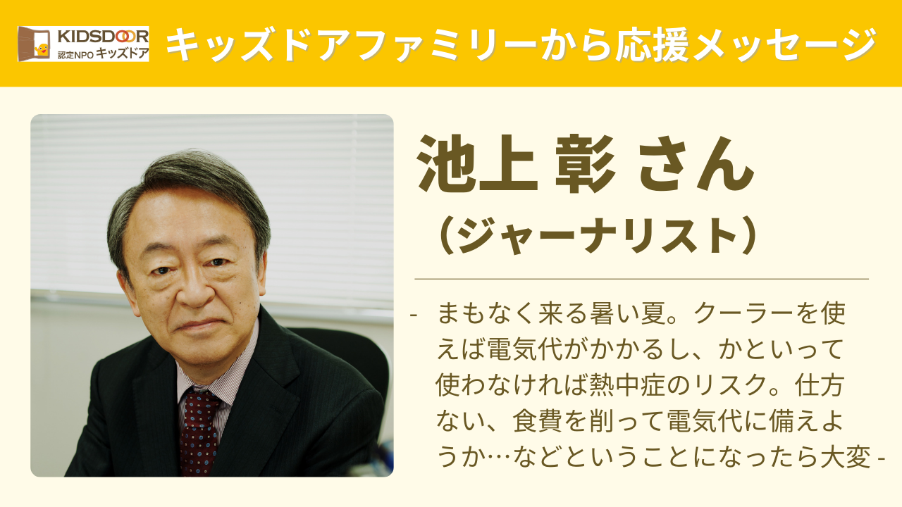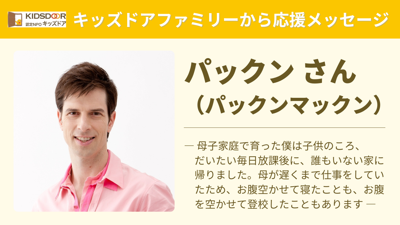 活動を支えていただいている「キッズドアファミリー」の方々より、応援メッセージをいただいています!