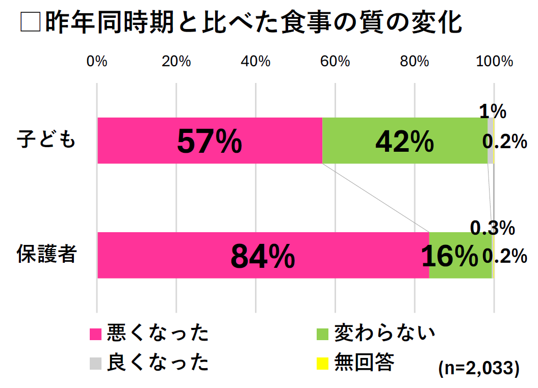 8割の保護者の食事の量が悪化