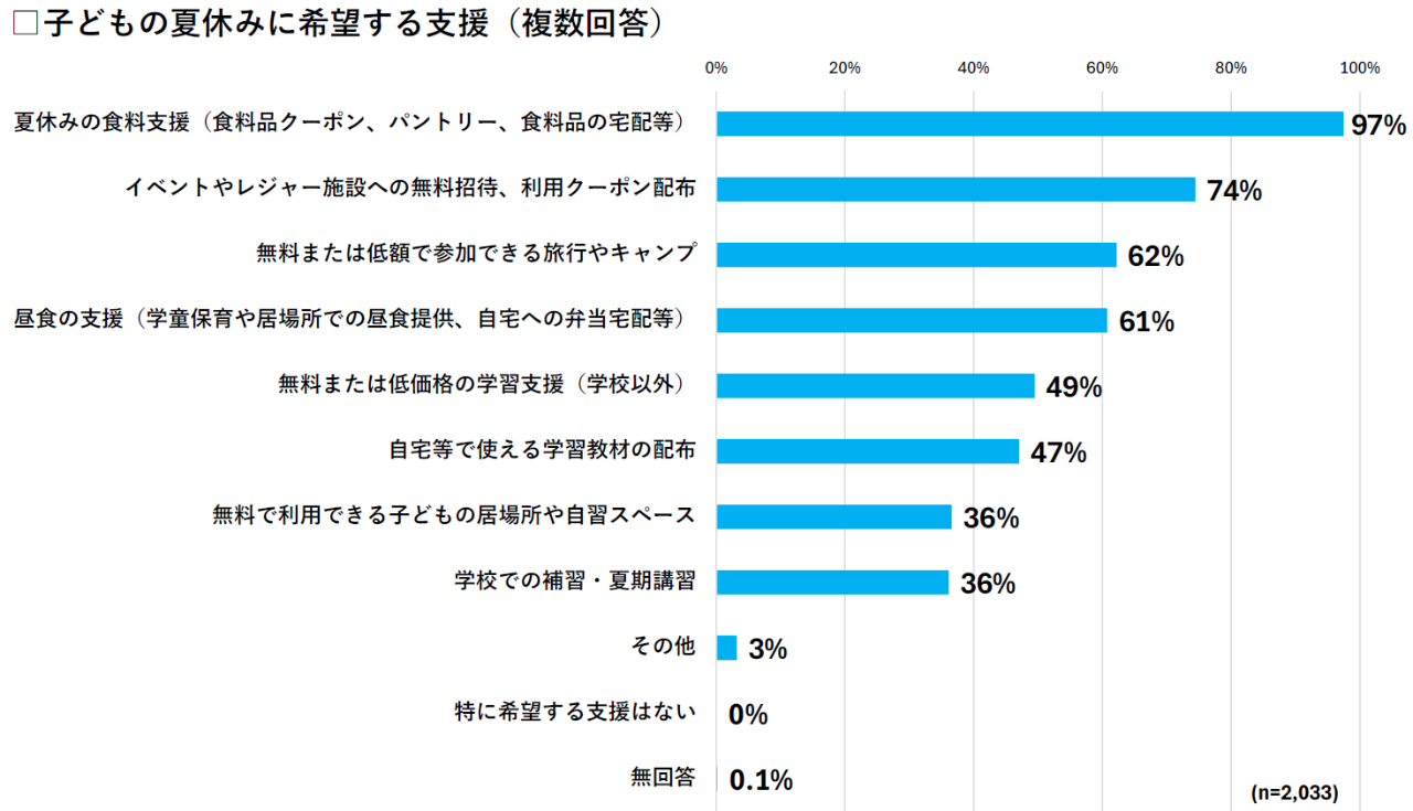 夏休みは食料と体験の機会が特に不足している