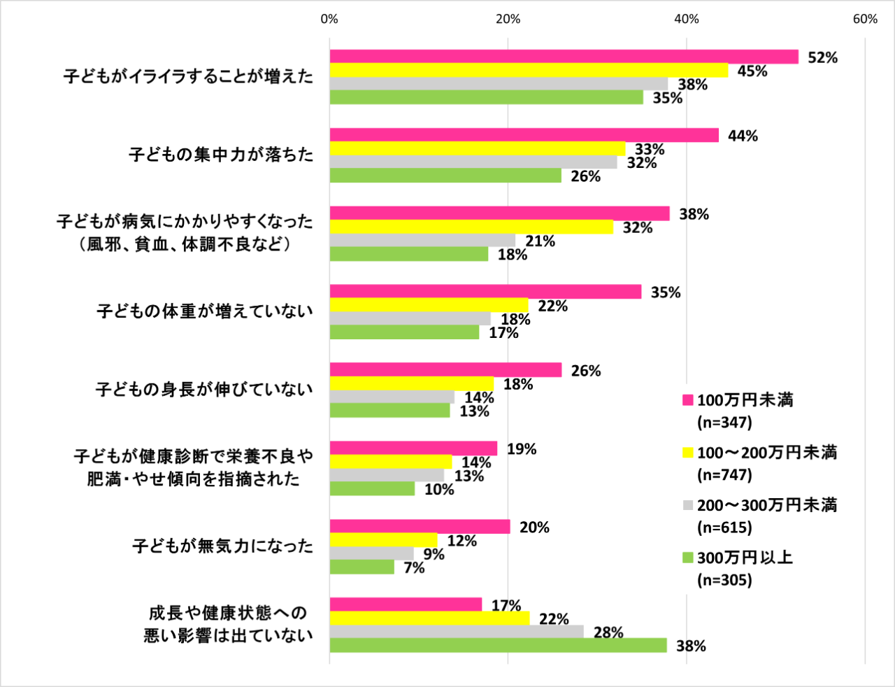 半数以上で子どもの健康状態へ悪影響が出ている