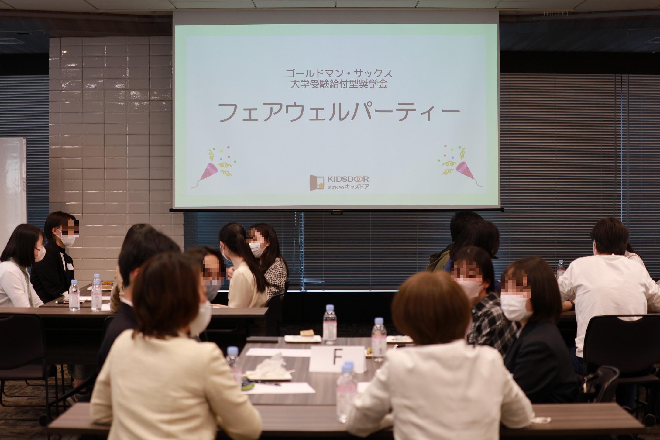 2023年3月22日には、ゴールドマン・サックス様とキッズドアの担当者、受給生がそれぞれ集い、大学進学のお祝いと今後を励ますフェアウェルパーティを行いました。