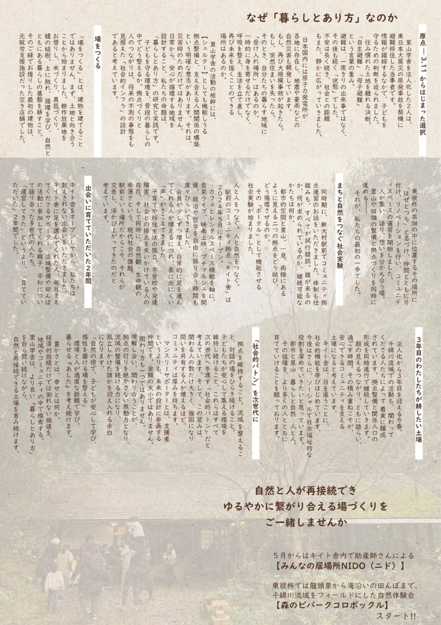 皆さまはじめまして、代表理事の石川雅美です。私は娘の難病をきっかけに九州に移住し「なるべく自然に負荷をかけない暮らし」を模索しています。子どもの病気をきっかけに衣食住に配慮するようになり、そのうち同じように病気や障がいや困りごとを抱えたお母さんたちの居場所、コミュニティ拠点づくりの重要性を痛感。そしてこれは子育て世代や一部の人に限ったことではなく、すべての世代において大事なことだと考えるようになりました。コミュニティから新たに色様々なつながり合いができて自分達の住むまちがいきいきしてくる、そんな理想を描いています。また、ひとりひとりができる時に、できる事をすることでしか、社会はよくならないと考えます。耕作放棄の田んぼや森林整備を一緒にしたり、自然体験会に参加してくれたり、平和について話し合ったり、おとなの部活動に参加してくださったり・・・多くの方に活動をご一緒頂いております。例えば直接参加できないことが多くても、私たちの理念に賛同してくださったり、若い世代にバトンをつなぐ意味合いでも、マンスリーサポーターとして「キイト舎」や「ひぜん里山学舎」の活動をご一緒できたら嬉しいです。みんなで少しでも良い社会、自然環境を未来に残していけるように「ゆるやかに」つながり合えれば幸いです。日々活動を一緒にしてくださっている方、サポーターとして支えてくださっている方、関わってくださっているすべての方に感謝しつつ、新たにご一緒できる皆さまとの出会いを楽しみにしております。