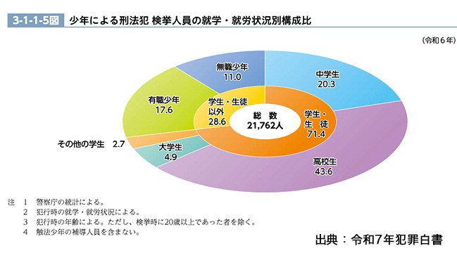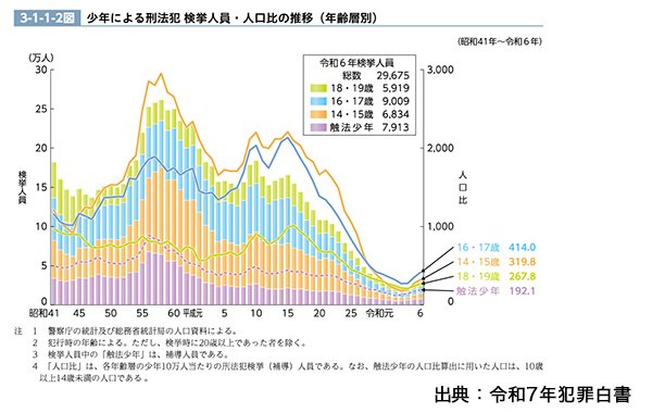 近年、社会的に闇バイトが話題となっており、平成に入ってから減り続けていた少年犯罪も令和4年より上昇傾向に転じたと言われております。このまま増加へと転じるのか、一時的なゆらぎで終わるのかは、今後の犯罪防止・再犯防止の対策にもかかっていると言われています。