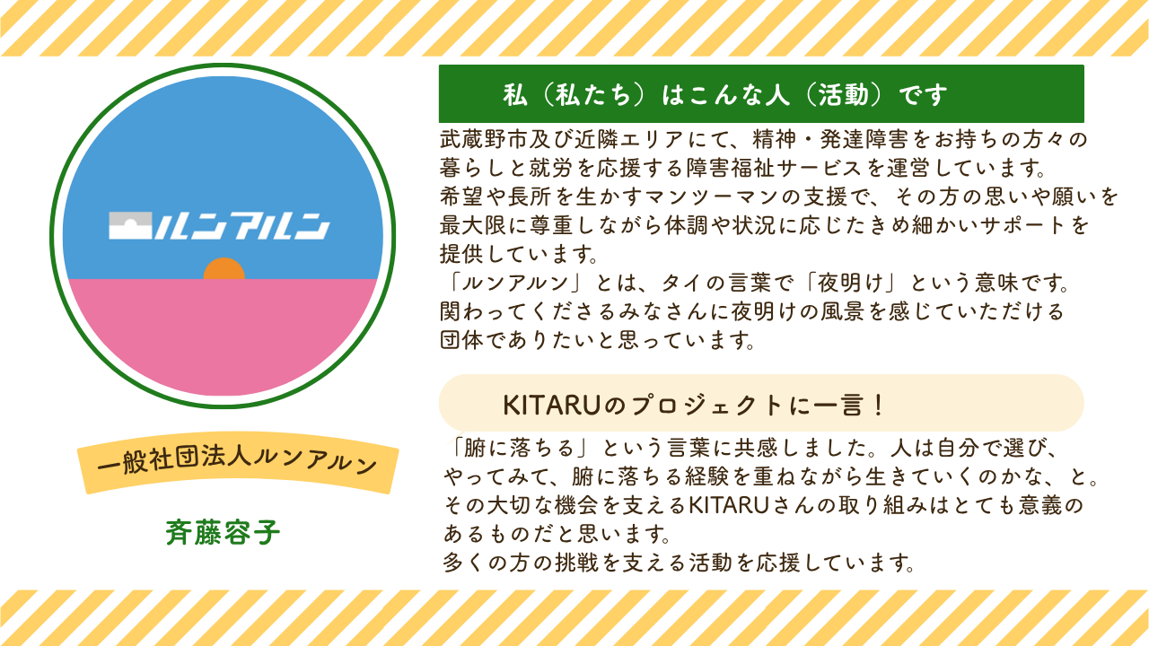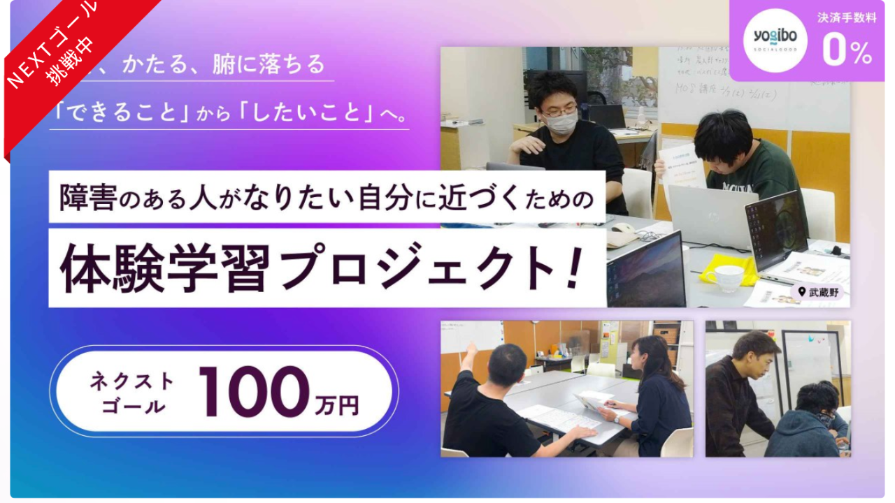 2026-03-15 10:21皆様のご支援に心より感謝申し上げます。開始から16日、目標金額を達成しました。このたびは、『きく、かたる、腑に落ちる 「できること」から「したいこと」へ。 障害のある人がなりたい自分に近づくための体験学習プロジェクト!』の実現に力を貸してくださりありがとうございました。このプロジェクトに関わる全ての人に感謝申し上げます。 開始から約2週間で、目標金額500,000円ご支援をいただくことができました。そして、目標金額達成後も、さらなるご寄付をいただき、現在、520,000円のご支援をいただいています。 私たちKITARUとしてはじめてのクラウドファンディングで、これほど多くの方に、そして、このスピードで応援をいただけるとは想像できておらず、現在、ネクストゴールの準備を進めております。 4/20のプロジェクト終了まで、引き続き応援をいただけれると幸いです。 どうぞよろしくお願いいたします。2026-03-15 10:21皆様のご支援に心より感謝申し上げます。開始から16日、目標金額を達成しました。このたびは、『きく、かたる、腑に落ちる 「できること」から「したいこと」へ。 障害のある人がなりたい自分に近づくための体験学習プロジェクト!』の実現に力を貸してくださりありがとうございました。このプロジェクトに関わる全ての人に感謝申し上げます。 開始から約2週間で、目標金額500,000円ご支援をいただくことができました。そして、目標金額達成後も、さらなるご寄付をいただき、現在、520,000円のご支援をいただいています。 私たちKITARUとしてはじめてのクラウドファンディングで、これほど多くの方に、そして、このスピードで応援をいただけるとは想像できておらず、現在、ネクストゴールの準備を進めております。 4/20のプロジェクト終了まで、引き続き応援をいただけれると幸いです。 どうぞよろしくお願いいたします。