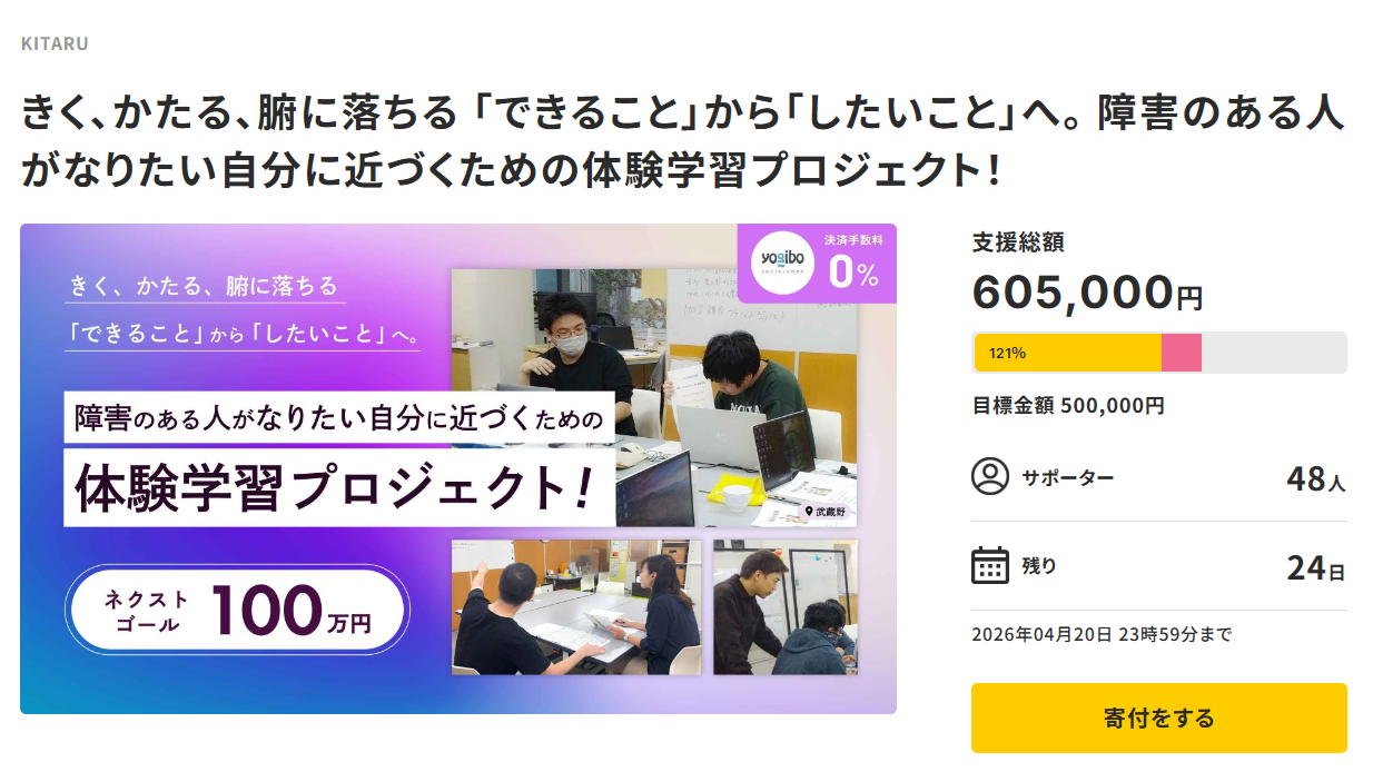 このたびは、私たちのプロジェクトに応援をしていただきありがとうございます。ネクストゴールのお願いをしてから1週間が経ちました。この間も日々プロジェクトページをご覧いただき、605,000円のご支援をいただくことができました。改めて、このプロジェクトに関わる全ての人に、心より感謝申し上げます。