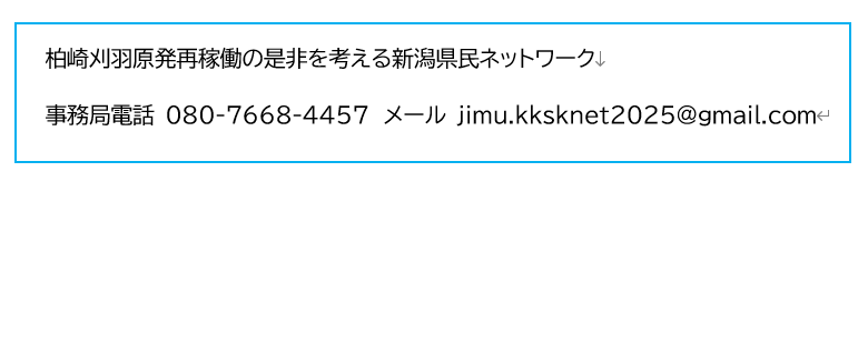 柏崎刈羽原発再稼働を問う活動へ、皆様のご関心、ご支援をお寄せください。