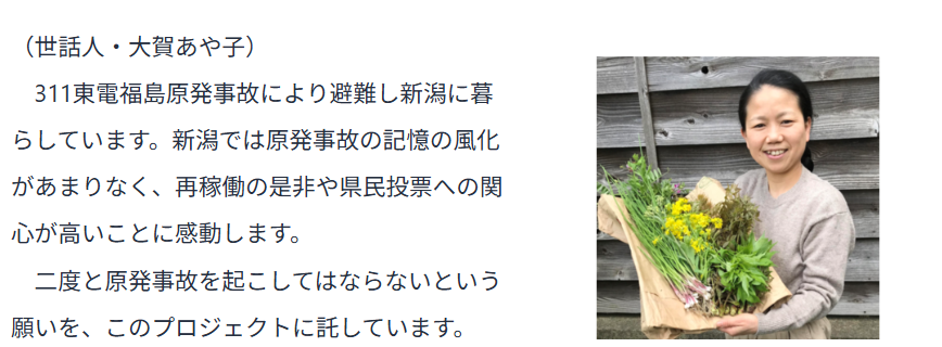万一事故が起これば新潟県だけでなく、風下の関東一円に壊滅的被害が広がり、日本を壊滅させます。それは明日にでも起こりうる危険です。原発のない社会を目指す私たちの活動は、日本の崩壊を防ぐ運動でもあると考えております。東電の圧倒的資金力による宣伝に対抗することはとても大変です。全国の皆様に支援をお願いし、この運動を次の世代に引き継いていきたいと考えております。よろしくお願い申し上げます。