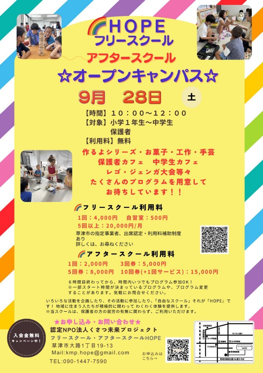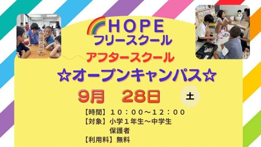 参加費無料🌈9/28HOPE オープンキャンパス開催、KMP サマースクール シェア会のお知らせ