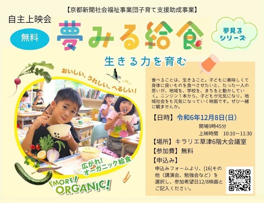 ①12月8日日曜日キラリエ草津にて「夢みる給食」の上映会を開催いたします。