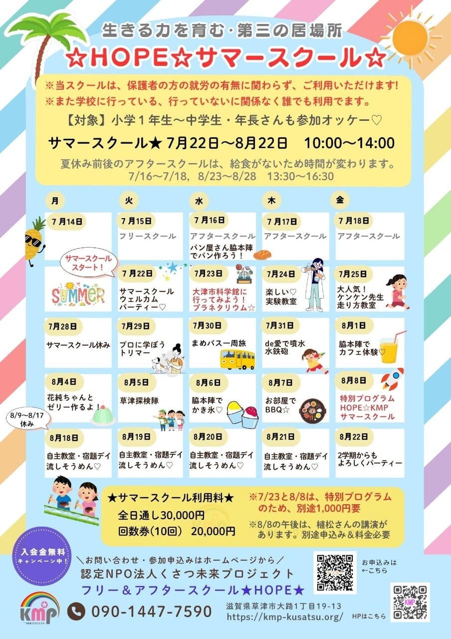 HOPE サマースクールの中、未来キッズ事業、