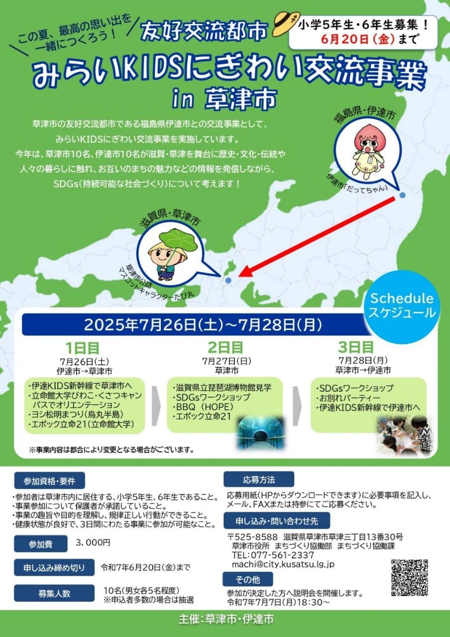 10年前、草津市西口商店街の有志の皆さんで始まった草津市の友好交流都市である福島県伊達市との交流事業「みらいKIDS にぎわい交流事業」