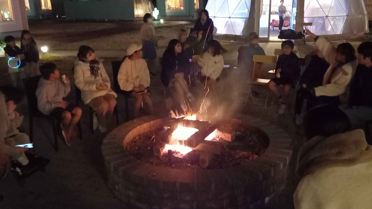 夕食はバーベキュー&食べ終わった後はみんなでキャンプファイヤーを実施。ピアニストの方がボランティアで来て下さり、星空の下でキャンプファイヤーの火をかこって音楽会を開催しました♫ピアノの演奏が終わると「少しだけ歌う仕事をしていました」という元歌手のお母さんも飛び入りで参加。クリスマスソングを歌って下さり、思い出に残るイベントとなりました!